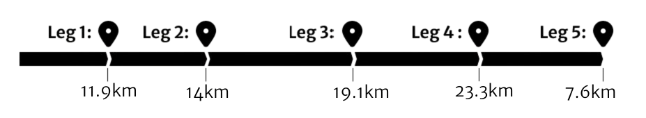 *If you’re not here by 7pm, you’ll be directed to stay on final Leg and finish your race at 81.3km. This is based on consistently maintaining a 10:30min/km pace.